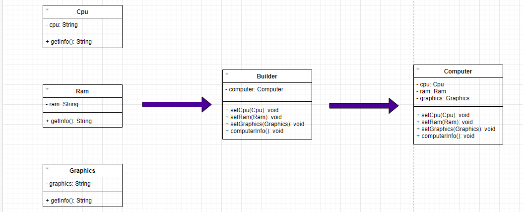먼저 Builder 를 생성하고 Computer 객체 생성을 Builder 를 통해 생성한 것을 알 수 있습니다.